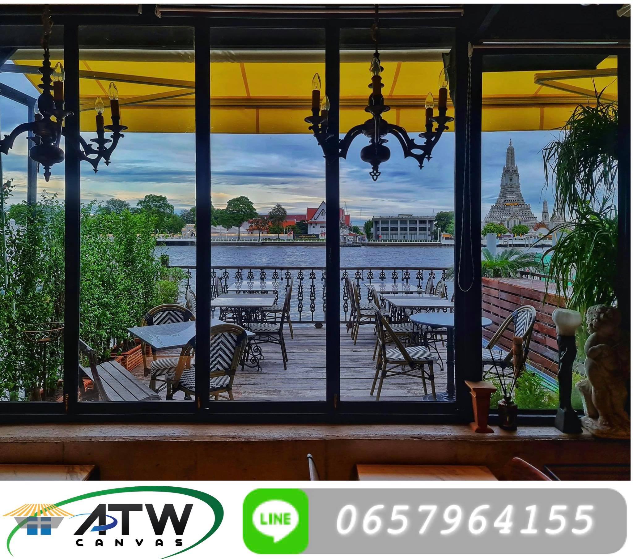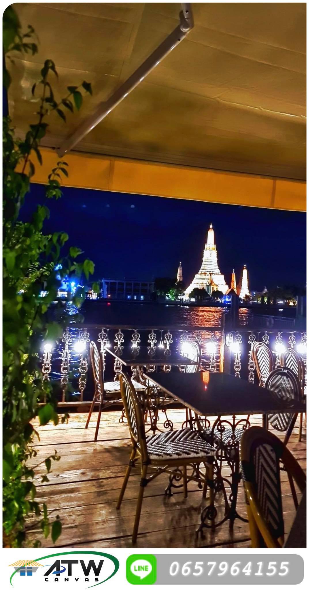 กันสาดแขนยื่นทรงก้ามปู ลูกค้าสามารถดูผลงานจริงได้จากร้าน Tha Arun นะครับ ร้านและวิวสวยมากๆ