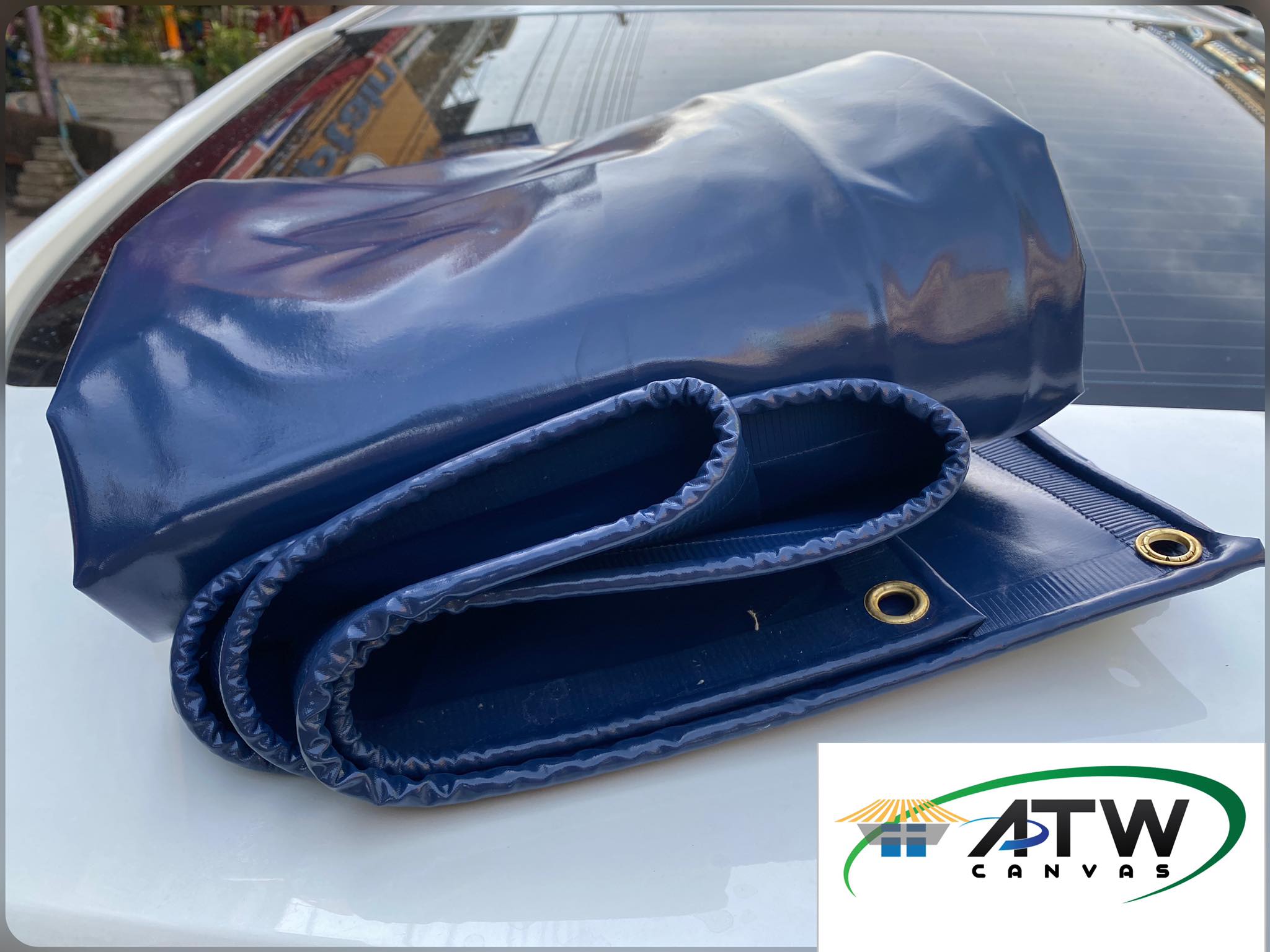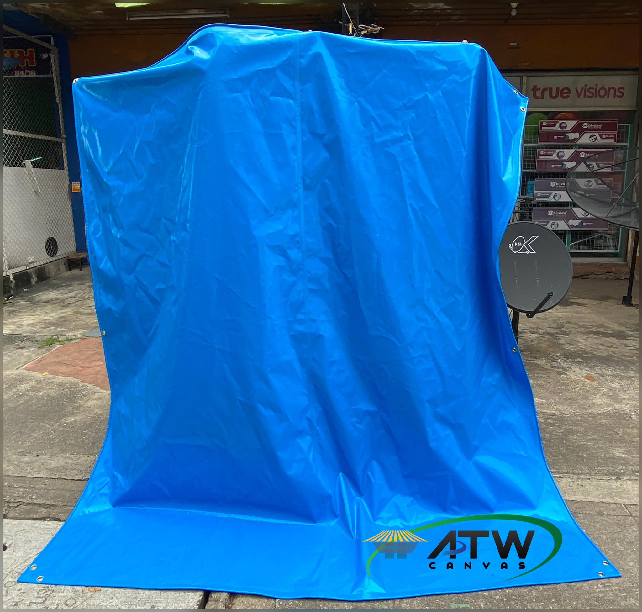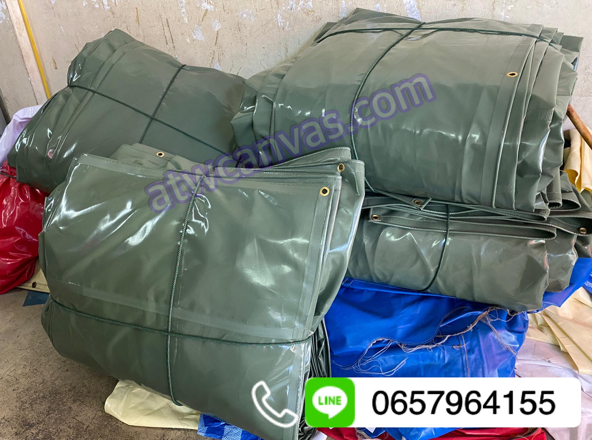 ผ้าใบคลุมรถบรรทุก สามารถสั่งทำในขนาดที่ต้องการได้ พร้อมเย็บมุมและใส่ตาไก่เพื่อร้อยเชือก แข็งแรงและมีความทนทานสูง