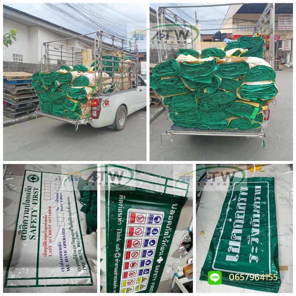 ผ้าใบคุณภาพสูง สกรีนสี่แน่นๆสดๆ จำนวน 2,104 ผืน พร้อมมุ่งหน้าสู่ไซท์งานก่อสร้าง ที่นครศรี ฯ และปัตตานีแล้ว สนใจสั่งผลิต ทักหนุ่ย โทร 0657964155 Line neonui